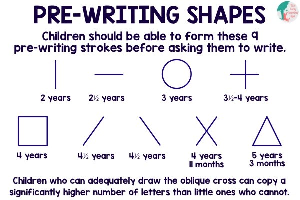 Students should be able to copy these 9 shapes before they are ready to easily learn to print letters. Do a baseline with your students/child and teach the proper formation of the pre-printing shapes before teaching letters.